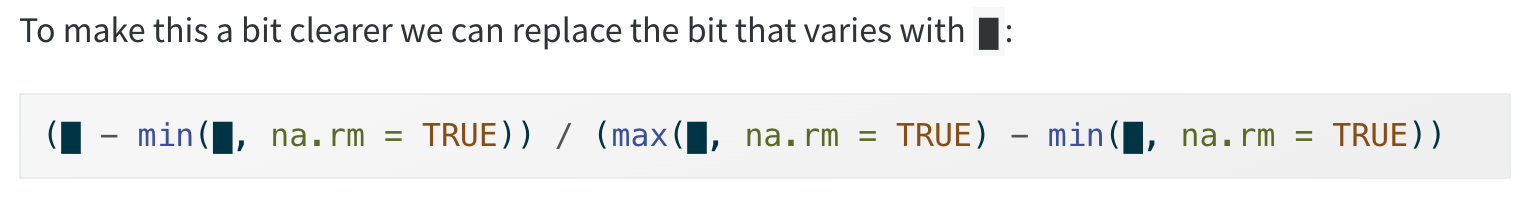 x because this is the conventional name for a numeric vector.x because this is the conventional name for a numeric vector.dfdf# A tibble: 5 × 4