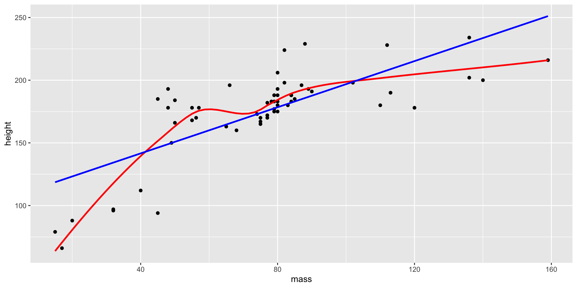 Function to eyeball whether or not a dataset is linear by overlaying a smooth line and a straight line: