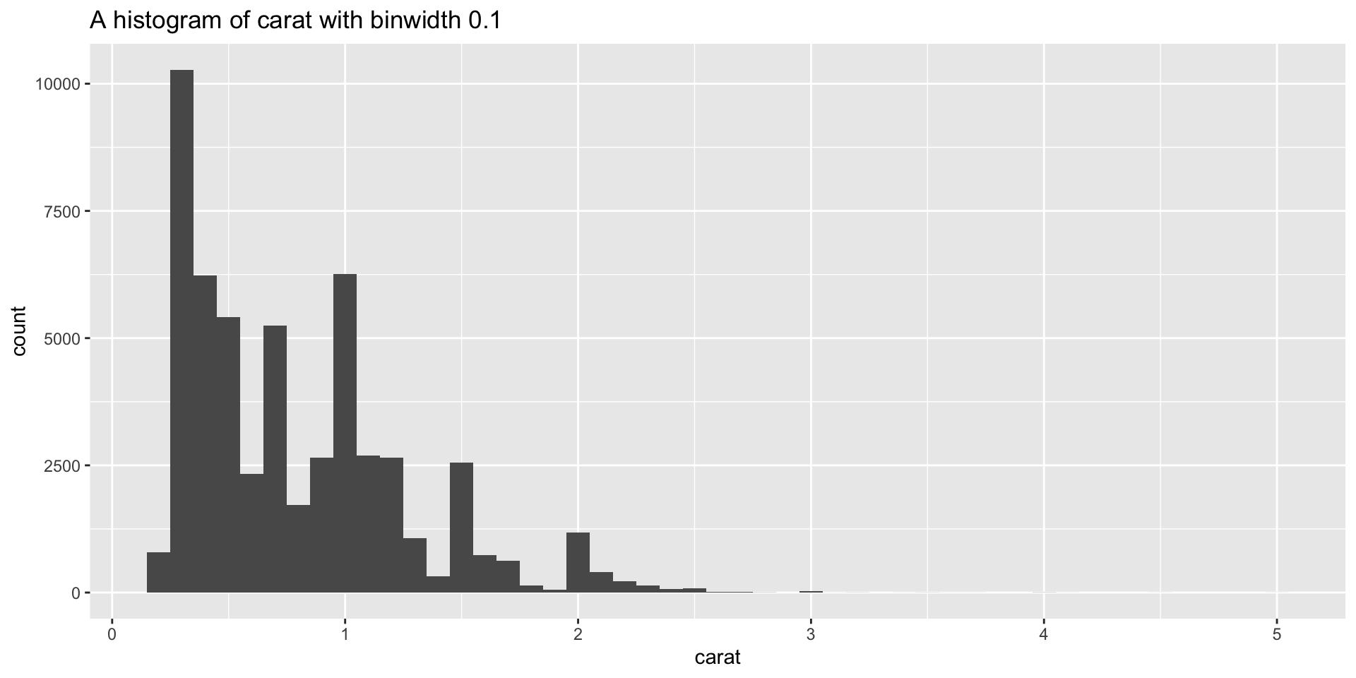 := The “walrus operator”= in a tidy function like mutate() when referring directly to a variable name: mutate(new_variable = ...) := let’s R know to look for the argument name supplied: mutate({{var}} := ...)Add a plot title that labels the variable and binwidth: