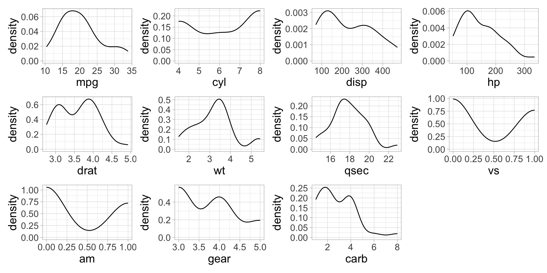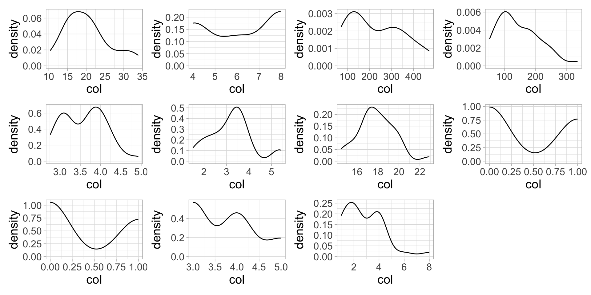 Want: A density plot for each column (variable) to explore data distributions
