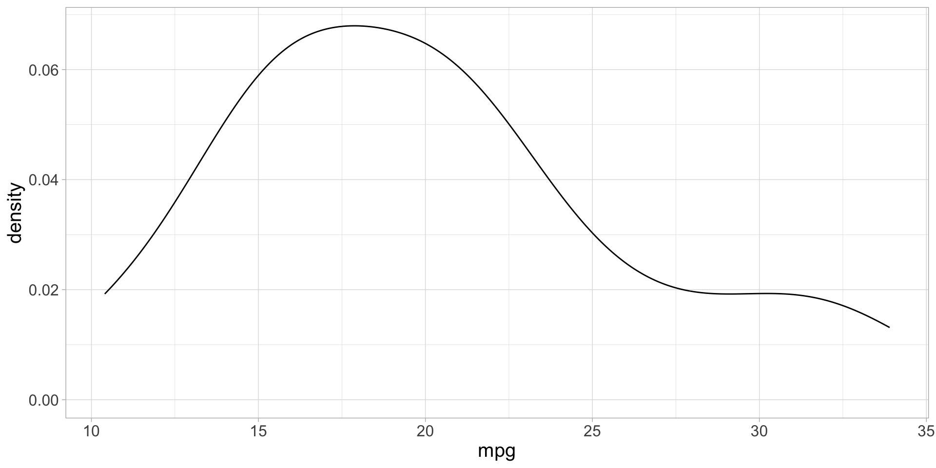 variable) and label (lab) as arguments so we can properly label our x-axesnames() function takes a data frame as input and outputs a vector of column names.map2() to execute the density_plot2() functionmtcars data frame is piped down as the .x argumentdensity_plot2() function as the variable argument.y is the labels vector we created above..f is the density_plot2() function.map2 takes each element of .x and .y and iteratively applies the plotting function to each .x and .y combination.map2() to execute the density_plot2() functionmap() use casesmpg dataset, plot highway mpg vs displacement, with points highlighted for each manufacturer# A tibble: 234 × 11